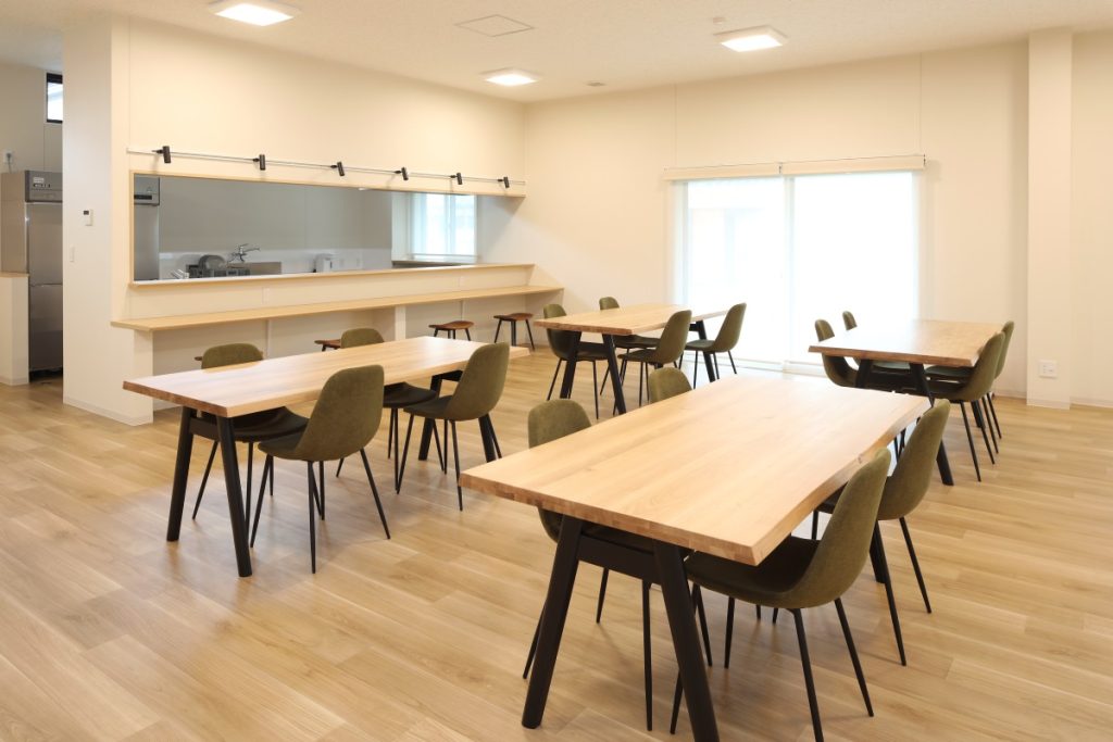 デイケアルーム: 約30名収容、オープンカウンター付きの厨房設備を設置し、多様な活動に対応