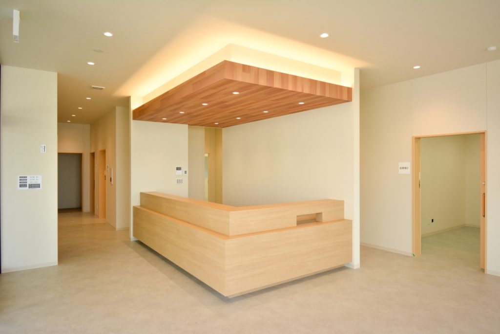 施設中央にスタッフルームと受付を集約しました。これにより、北側の診療エリアにも、南側のデイケアエリアにもスタッフの目が行き届きやすく、円滑で漏れのない運営を可能にする動線計画を意識しています。
