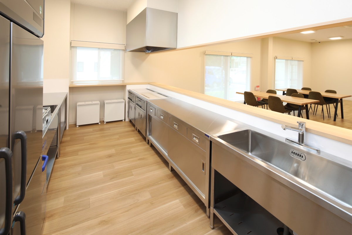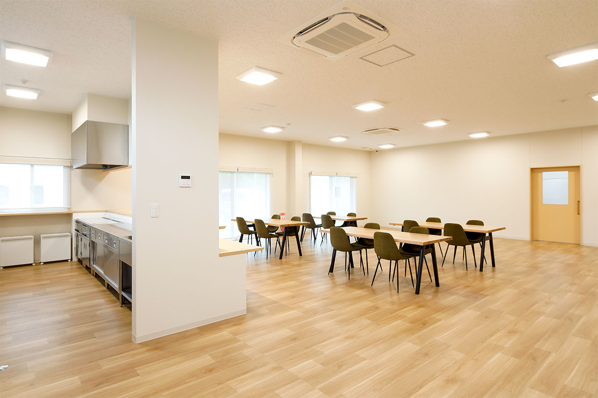 デイケアルーム: 約30名収容、オープンカウンター付きの厨房設備を設置し、多様な活動に対応