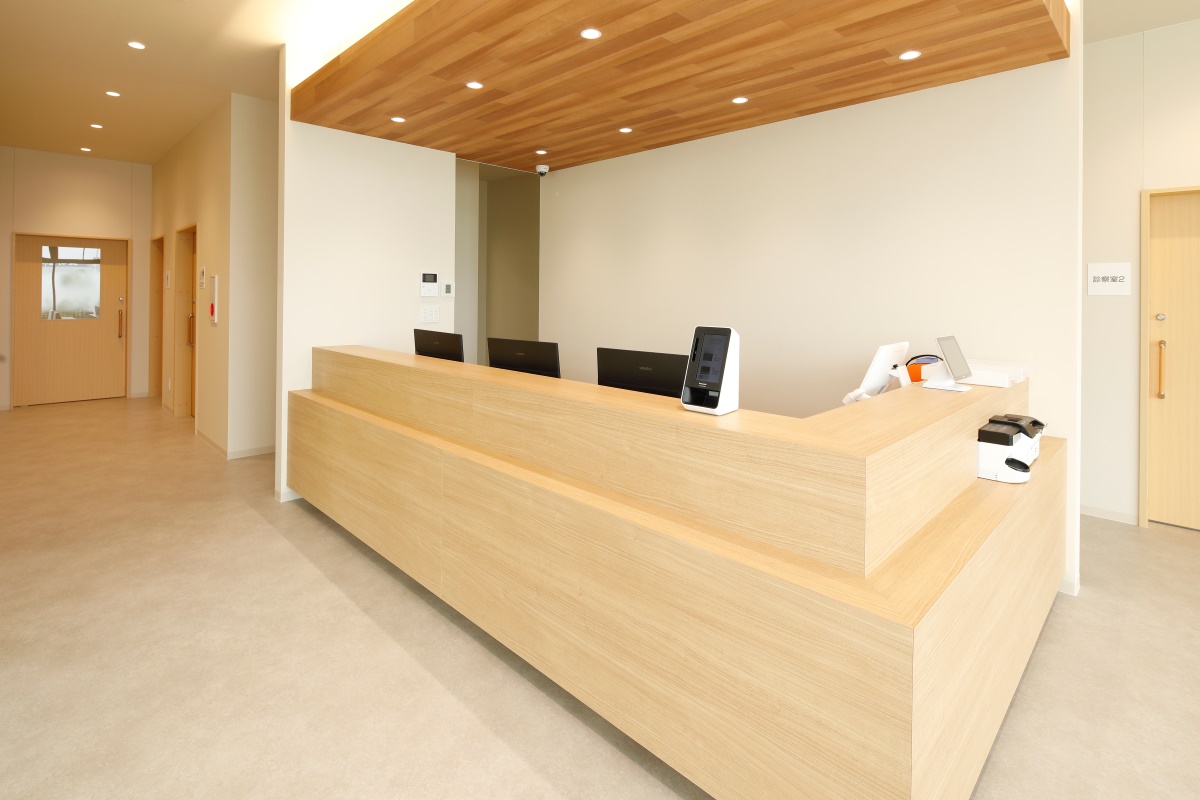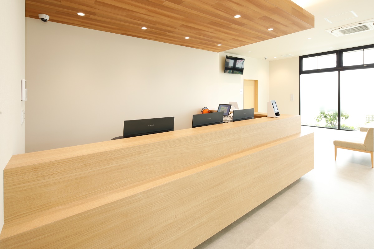 施設中央にスタッフルームと受付を集約しました。これにより、北側の診療エリアにも、南側のデイケアエリアにもスタッフの目が行き届きやすく、円滑で漏れのない運営を可能にする動線計画を意識しています。